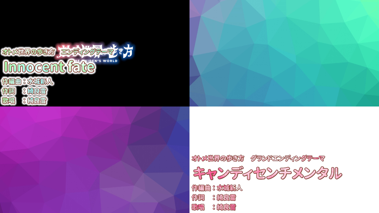 Orthros 様・オトメ世界の歩き方のエンディング2曲のカラオケ配信が始まりました。